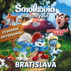 Dobrodružný park Šmolkovia - Magický svet prinesie do Bratislavy čarovný svet Šmolkov v takmer nadživotnej veľkosti. Šmolkovia pozývajú deti aj dospelých priamo do svojich hubových domčekov, ktoré sú tak veľké, že sa tam zmestí dieťa, ale aj dospelý človek. Šmolkovský kúzelný les ponúka veľké množstvo objavov a interaktívnych dobrodružstiev. Deti budú môcť spoznať, ktorému zo Šmolkov sa najviac podobajú, naučia sa hovoriť šmolkovskou rečou či uvaria kúzelný lekvár. Predovšetkým sa však všetci spoločne a hravou formou dozvedia o tom, ako chrániť nielen Šmolkov, ale aj ten náš “ľudský les“. Spolu s malými Šmolkami tak všetci prežijú napínavé dobrodružstvo na záchranu prírody, kde spoločne uniknú nahnevanému kocúrovi Azraelovi a zvíťazia nad zákerným čarodejníkom Gargamelom a jeho strašným strojom. Roztomilé modré postavičky okúzľujú svojich detských i dospelých fanúšikov už 65 rokov a v Bratislave sa zdržia niekoľko mesiacov.