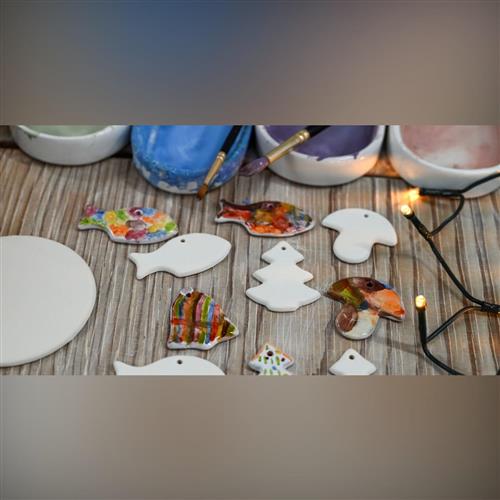 Čaká vás maľovanie keramiky: vianočné ozdoby, gule, svietniky, anjeli, snehuliaci, šálky, misky, vázy.