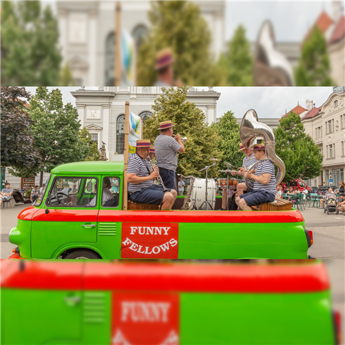Príjemná swingová hudba Funny Fellows rozozvučí centrum mesta a pozve Bratislavčanky, Bratislavčanov a Bratislavčatá na víkend plný zážitkov. Hudobné autopódium budú sprevádzať veľké černošské bábky z Féder Teáter.